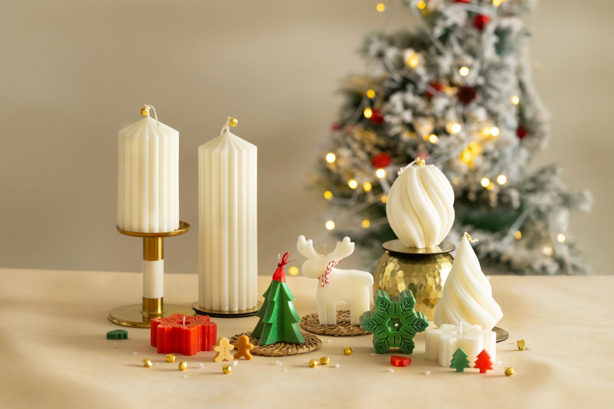 Popular choices include Reindeer candles, Christmas tree candles, cactus garden candles, circus pillar candles, and wax melts. These look festive, premium, and perfect for holiday gifting.