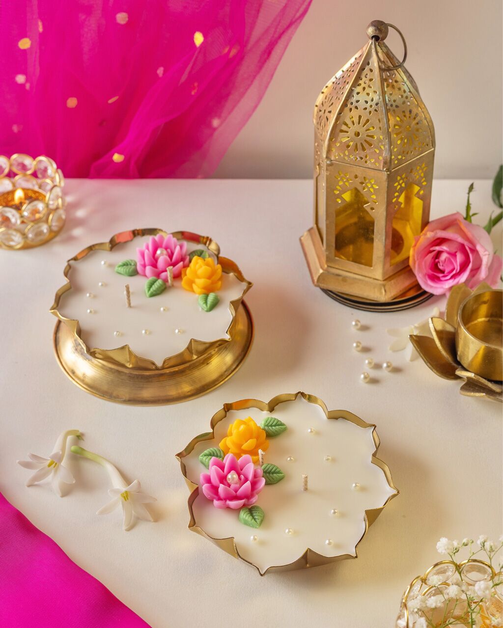 The Padma – Lotus Urli Candle draws inspiration from the sacred lotus, a symbol of purity and divine renewal. Hand-poured into a traditional urli form, Padma is designed to be the centerpiece of your festive home. With its radiant glow and delicate craftsmanship, it’s perfect for lighting up Diwali evenings, wedding décor, or as a luxurious gift.