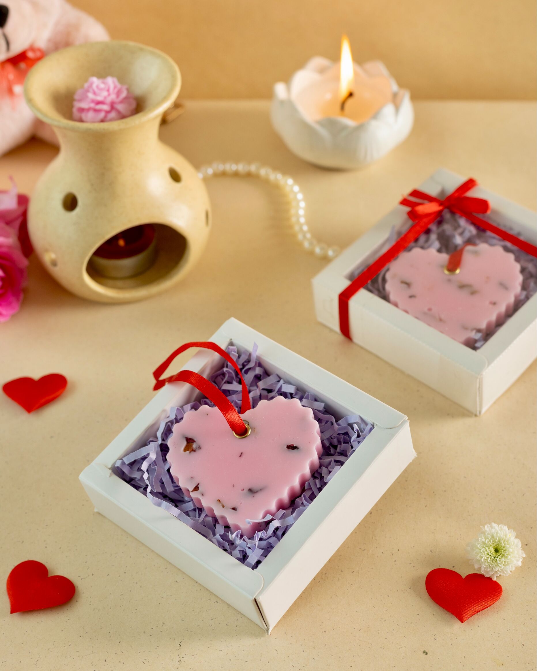 The Heart Sachet is a sculpted wax piece designed to gently scent wardrobes, drawers, and intimate corners of your home. Crafted with care and infused with refined fragrance, it releases aroma slowly—creating a soft, lingering presence without overpowering the space.